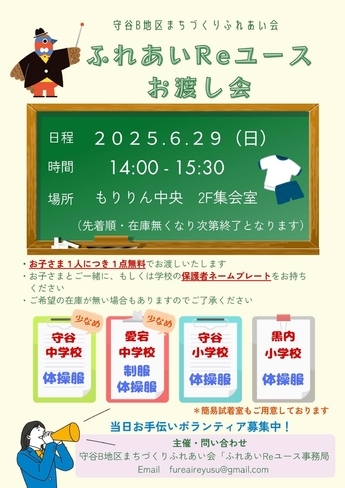 | 令和7年6月29日(日曜) | ふれあいReユースお渡し会 | もりりん中央 |